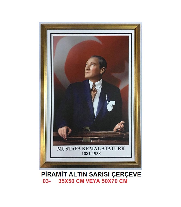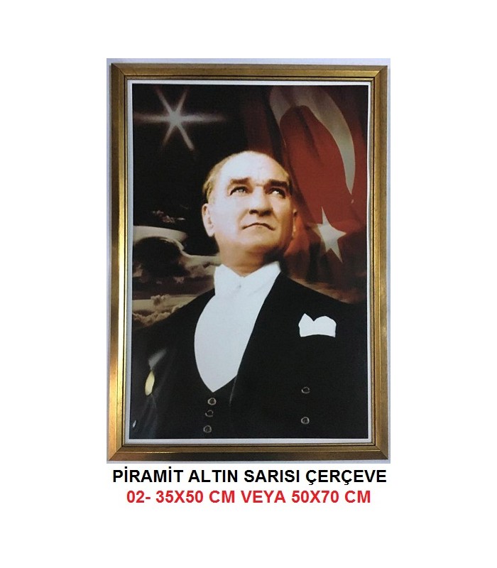 ALTIN SARISI PİRAMİT ÇERÇEVEMİZDE GENİŞLİK 3.5 CM DİR.