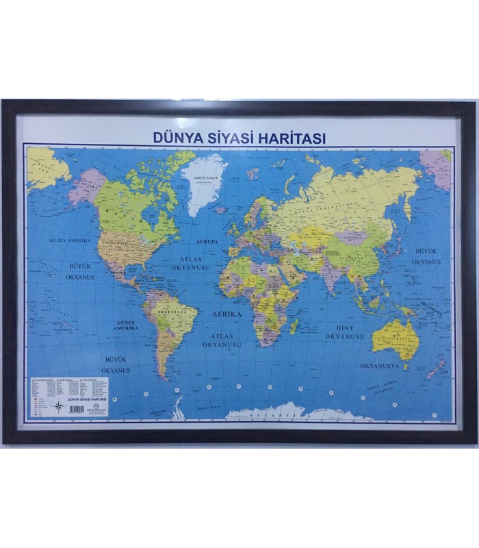 Ü.KODU -886 100X140 CM DÜNYA SİYASİ HARİTASI (ALÜ. ÇERÇEVE)- 1600,00 TL