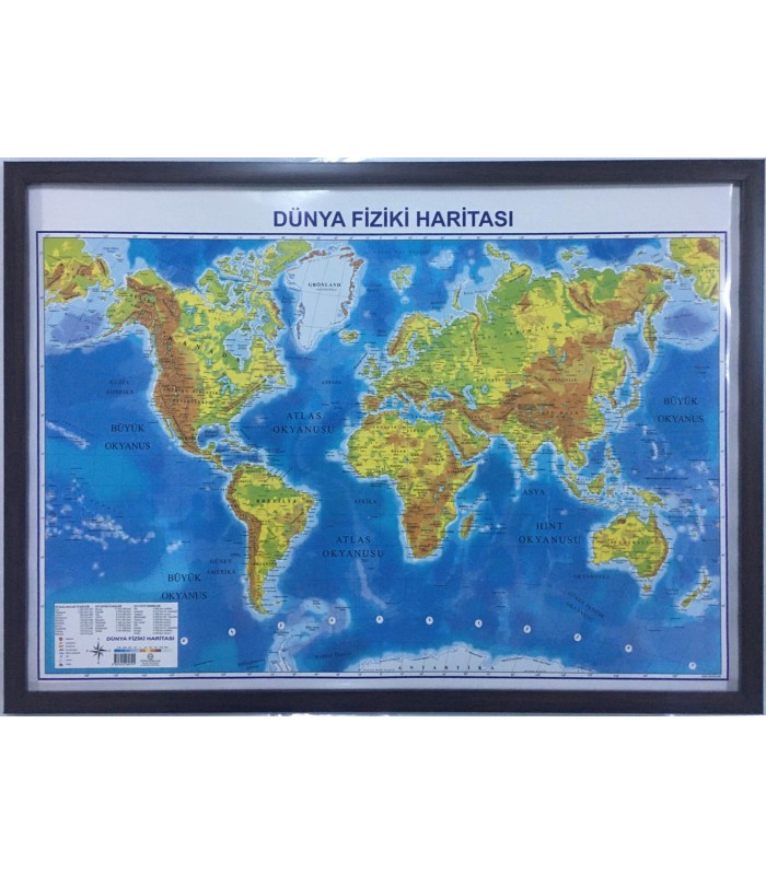 Ü.KODU -442 70X100 CM DÜNYA FİZİKİ HARİTASI (ALÜMİNYUM ÇERÇEVE)- 928,00 TL
