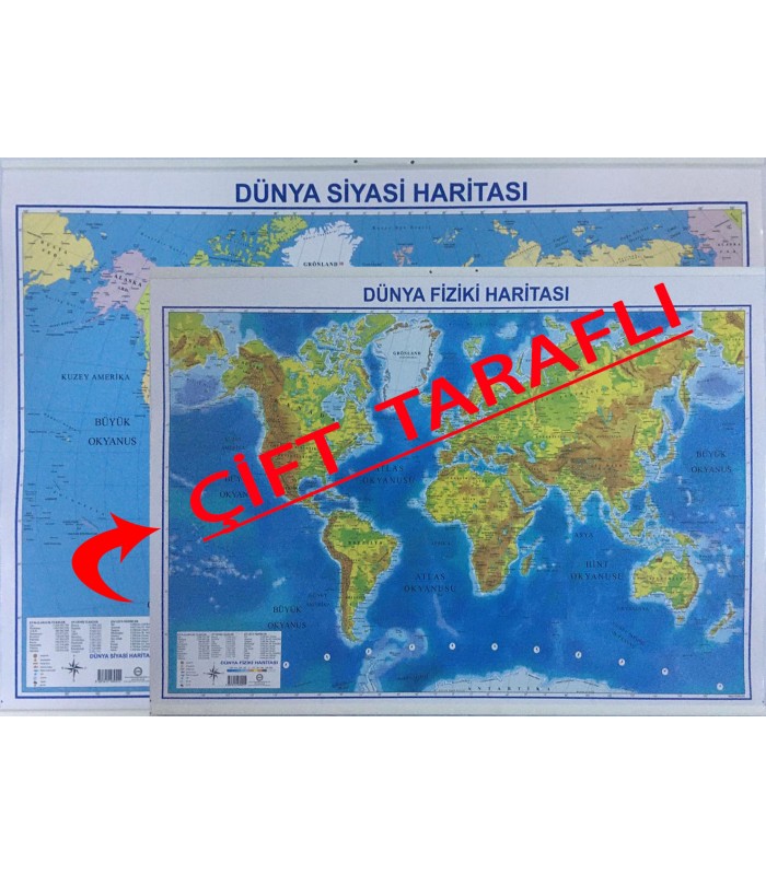 Ü.KODU -432 70X100 CM DÜNYA HARİTASI (SİYASİ-FİZİKİ ÇİFT TARAFLI)(ÇITALI) -180,00 TL