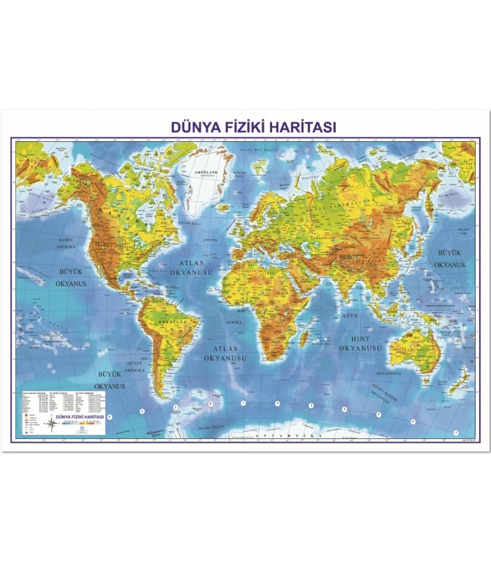 Ü.KODU -431 100X140 CM DÜNYA FİZİKİ HARİTASI (ÇITALI) - 450,00 TL