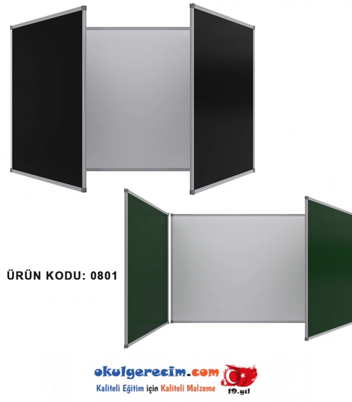 Beyaz yüzeyi tahta kalemiyle, yeşil yüzeyi tebeşirle kullanılabilir. Çeşitli boyut seçenekleri mevcuttur.