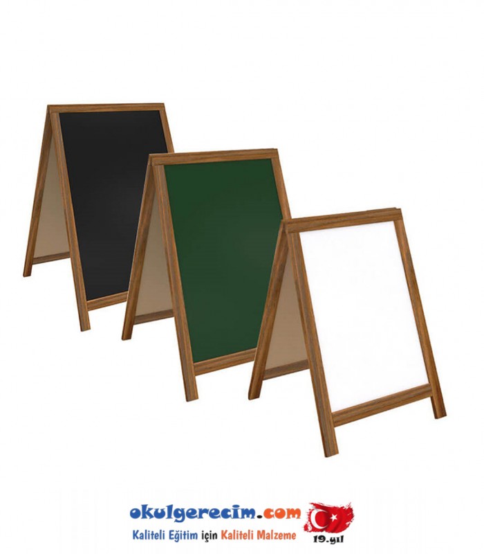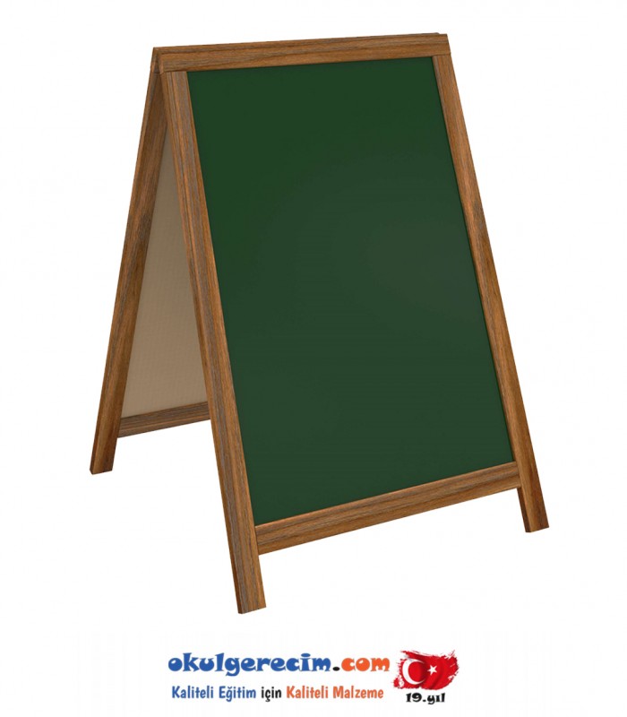 ÜRÜN KODU 0820-1 AHŞAP - AYAKLI ÇATI TİPİ YAZI TAHTASI - (YEŞİL/SİYAH) 60x85 cm 33363 TL