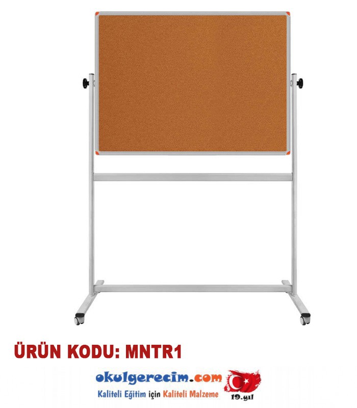 ÜRÜN KODU MNTR1 - 360° DÖNERLİ ÇİFT TARAFLI TEKERLEKLİ MOBİL MANTAR PANO - 90x120 cm - 6000 TL