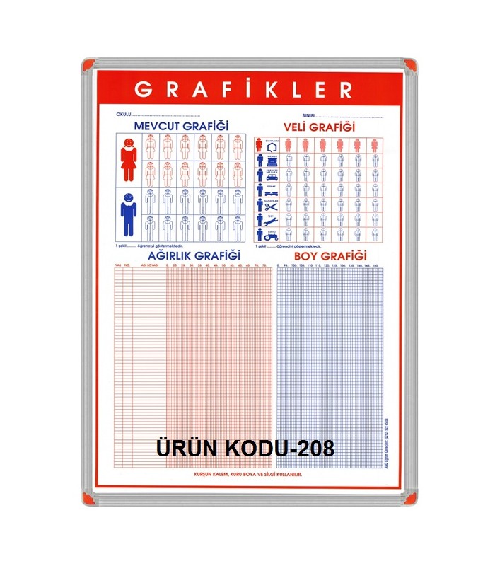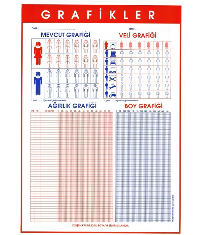 Sınıfınızın Mevcut öğrenci,Veli Grafiğini,Ağırlık Grafiğini ve Boy Grafiğinin olduğu istatiksel olarak işlenip pratik olarak işleyebileceğiniz posterimiz selefonludur,Üzerine yazılıp-silinebilinir.Tozdan ve rutubetten etkilenmez. Bu nedenle uzun süre kullanabilirsiniz.