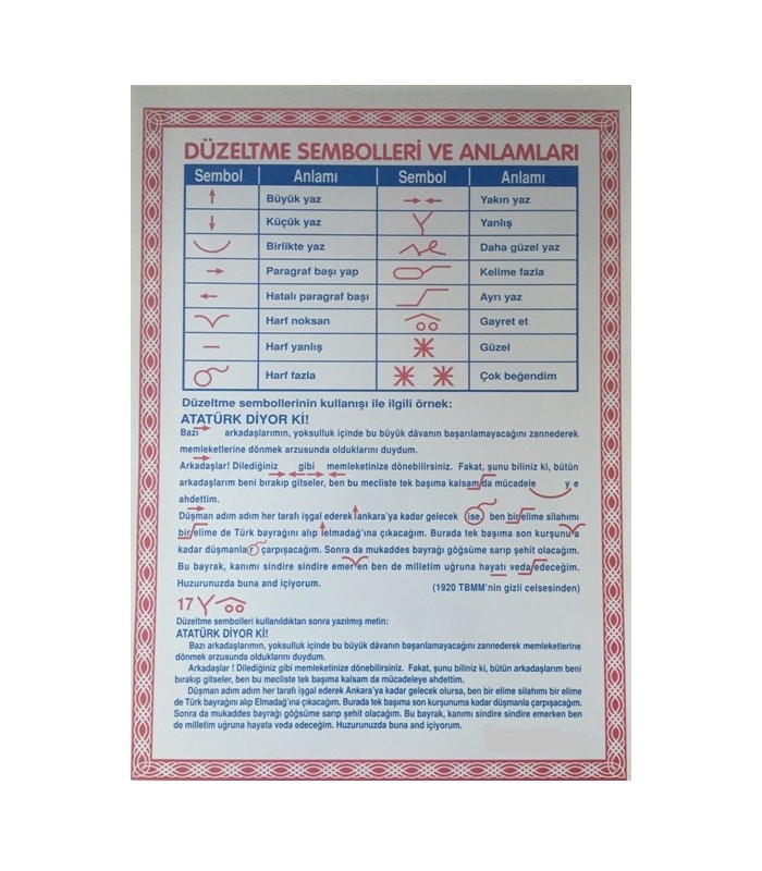 Ü.KODU -222 50X70 CM DÜZELTME SEMBOLLERİ (ÇITALI)-100,00TL