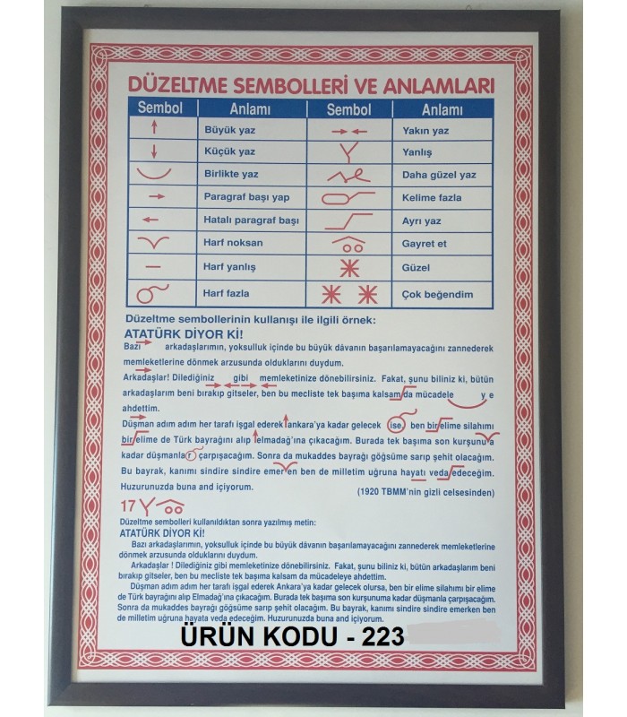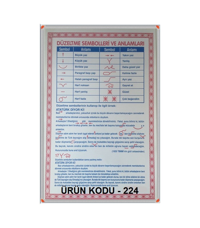 Ü.KODU -224 50X70 CM DÜZELTME SEMBOLLERİ (ALÜMİNYUM ÇERÇEVELİ)-820,00 TL