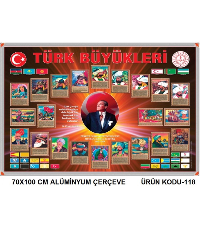 Ü.KODU -118 70X100 CM TÜRK BÜYÜKLERİ (ALÜMİNYUM ÇERÇEVELİ)-1300,00-TL
