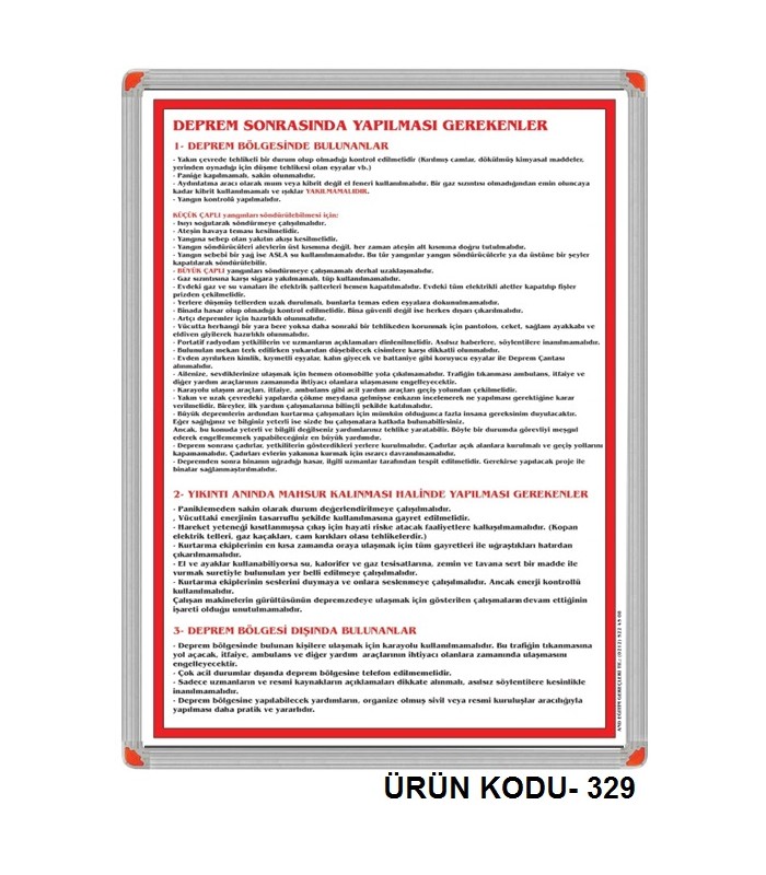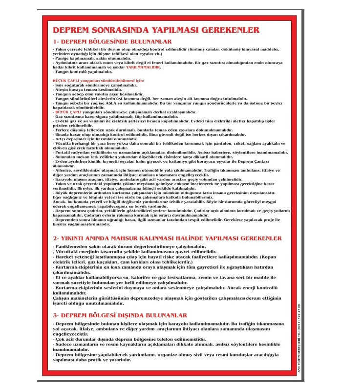 Deprem sonrası yapılması gerekenler panosu özelliklerini şöyle listeleyebiliriz.